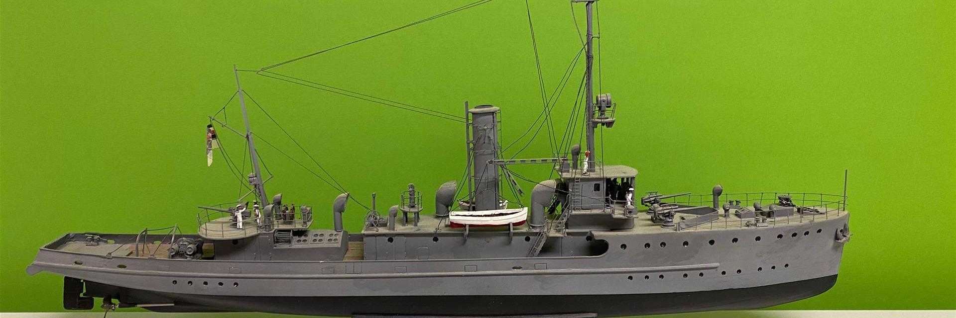 Mit dem Blick eines anspruchsvolleren Modellbauers hatte ich geplant, das Modell noch zwei mal zu (besser) bauen, noch einmal als Minensuchboot der kaiserlichen Marine und einmal als umgebaut Artillerieschulschiff der Kriegsmarine. Leider ist der Grundbausatz heute nicht mehr erhältlich. Schade! Und für ganz selbst bauen bin ich doch zu ungeschickt.
